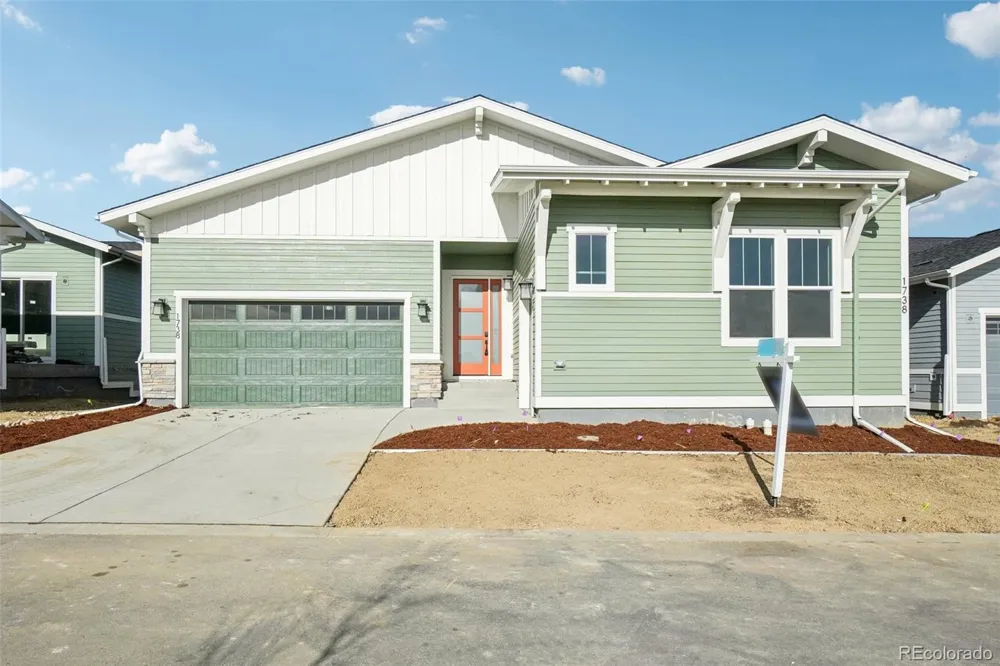 The Serene plan in the Thrive Home Builders Patio Collection offers a true lock-and-leave lifestyle—perfect for full-time living or a second home. This open, airy layout features 4 bedrooms, 3.5 bathrooms, and a 3-car split garage. The finished garden-level basement adds incredible flexibility with two bedrooms, a full bath, and a spacious rec room. The gourmet kitchen shines with stainless-steel KitchenAid appliances, warm-stained cabinetry, quartz countertops, and a stylish picket-tile backsplash. The great room impresses with soaring ceilings, massive windows overlooking the greenbelt, richly toned LVP flooring, and a sleek electric fireplace wrapped in floor-to-ceiling tile. Matte-black fixtures and a modern metal stair railing complete the cohesive, contemporary design. Built with Thrive’s renowned energy-efficient standards, this home prioritizes comfort, health, and long-term savings. Located in the sought-after Sonders master-planned community, residents will enjoy a lifestyle centered around wellness and the outdoors. Future amenities include a pool, learning center, beautifully landscaped parks, miles of scenic trails, a putting green, and a dedicated dog park. Exclusive access to Richards Lake and a prime location just five miles north of downtown Fort Collins provide the perfect blend of nature, recreation, and convenience.